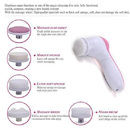 Here is the 5 In 1 Battery beauty care massager. It operated by 2xAA batteries (not included), have 5 accessories.