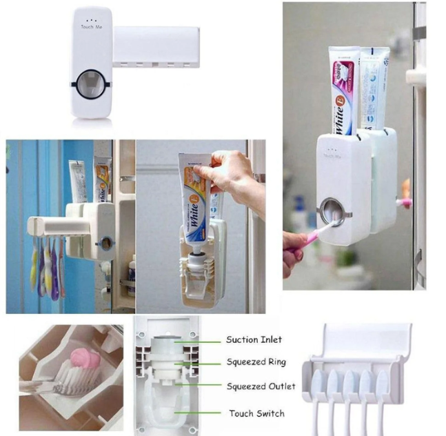 This is a unique automatic toothpaste dispenser for your convenience, Hygienic and economy in using toothpaste in the bathroom. Its design is very simple and use easily through convenient one-touch method. This awesome toothbrush holder prevents waste of toothpaste. Be compatible with any kind of toothpaste. Don't need to use screw to install touch me toothpaste dispenser. 3M double-sided adhesive tape. The automatic toothpaste dispenser needn't any electrical power. For your hygiene in your bathroom, it is an essential product.