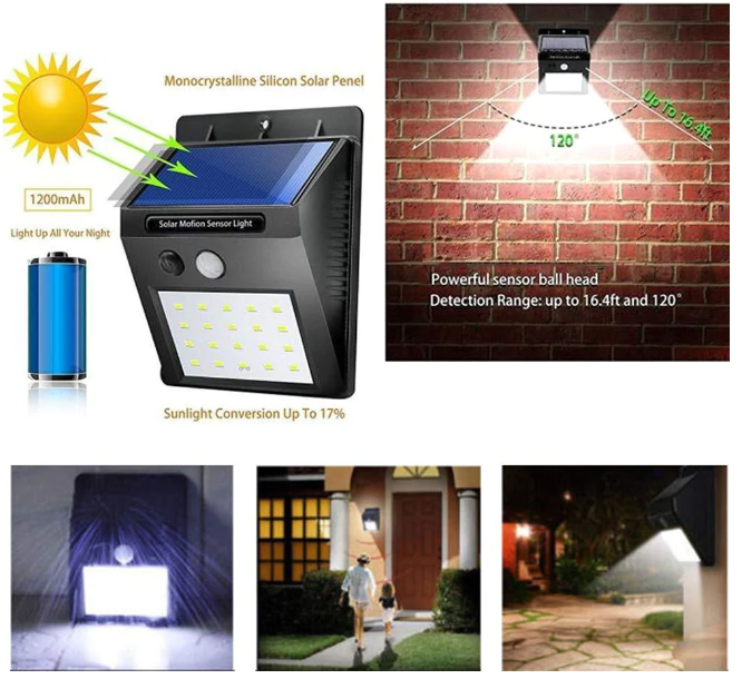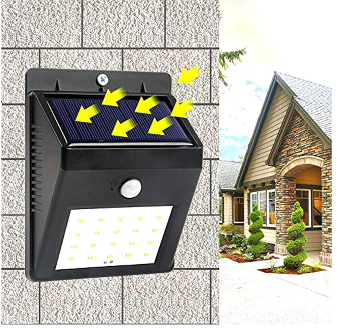 SOLAR SECURITY LED NIGHT LIGHT FOR HOME OUTDOOR/GARDEN WALL (BLACK) (20-LED LIGHTS)
