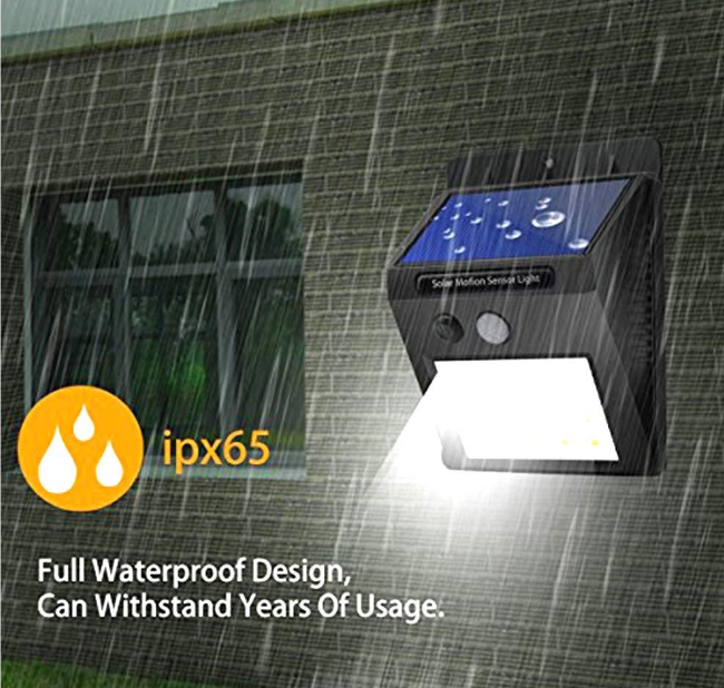 Bright Waterproof Solar Wireless Security Motion Sensor LED Night Light for Outdoor/Garden Wall (Black) with Plastic packing Sealer free
